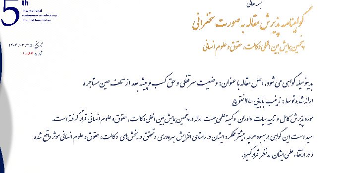 نمایه مشاغل حقوقی سایت صلح؛ مرجع حقوقی ایران به صورت دوره ای بروز رسانی می شوند. با این وجود این امکان وجود دارد که در فواصل بروز رسانی مجوزها و وضعیت شغلی برخی از متخصصین درج شده در وبسایت دستخوش تغییر شده باشد. بنابراین از شما خواهشمندیم هنگام مراجعه به متخصصین از صحت و تمدید مجوزهای شغلی مربوطه اطمینان حاصل فرمایید. بدیهی است که صلح؛ مرجع حقوقی ایران هیچ گونه مسوولیتی در این مورد برعهده نمی گیرد.