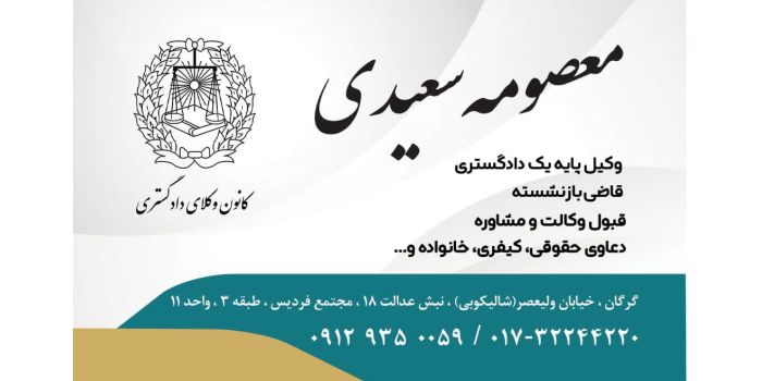 نمایه مشاغل حقوقی سایت صلح؛ مرجع حقوقی ایران به صورت دوره ای بروز رسانی می شوند. با این وجود این امکان وجود دارد که در فواصل بروز رسانی مجوزها و وضعیت شغلی برخی از متخصصین درج شده در وبسایت دستخوش تغییر شده باشد. بنابراین از شما خواهشمندیم هنگام مراجعه به متخصصین از صحت و تمدید مجوزهای شغلی مربوطه اطمینان حاصل فرمایید. بدیهی است که صلح؛ مرجع حقوقی ایران هیچ گونه مسوولیتی در این مورد برعهده نمی گیرد.