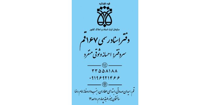 زیر نظر خانم احسانه وثوقی کارشناسی ارشد حقوق ثبت اسناد و املاک و دارای مدرک DBA داوری حقوقی از دانشگاه تهران